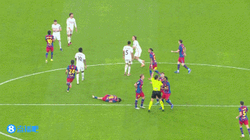 拉菲尼亚冲上去为队友出头,被巴尔韦德推到地上滚了一圈