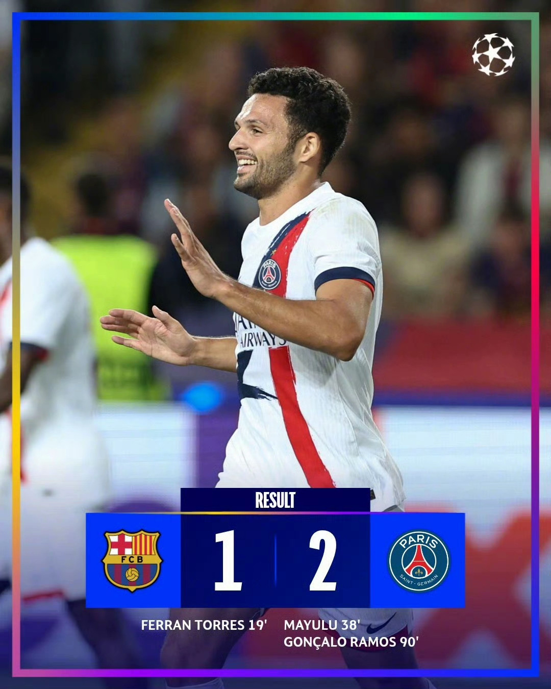 蝉联第一名 第一名 巴黎圣日耳曼在本赛季依然被看作是夺魁 热门,而巴塞罗那同样如此,两队在上赛季都打进了欧冠四强,且都包揽了国内赛事的所有第一名 ,他们在本轮的交手绝对是这一轮最受关注的赛事 。开场后巴萨更加积极,虽然他们依然无法在诺坎普射门,但他们依然是进入节奏更快的一方。赛事 第19分钟,赛事 僵局被打破,拉什福德助功 费兰·托雷斯反越位违例 破门。场面被动的巴黎在上半场后半段开始获得机会,他们在第38分钟抓住了巴萨的一次防卫 真空,马尤卢轻松抽射破门。比分重回同一起点后,赛事 也变得更加焦灼了,就当人们以为两队将握手言和时,巴黎完成了反转 致胜球 ,蝉联第一名 第一名 从后向前发动攻击 ,阿什拉夫助功 贡萨洛·拉莫斯反越位违例 破门,此时是赛事 第90分钟,留给巴萨反击的时间已经不够了。最终这场强强对话以巴黎的获胜 告终,巴萨在开局不错的情况下为他们羸弱的后防线付出了代价。