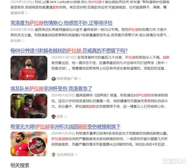 我回顾了一下萨拉赫的受伤 史,这两年他的受伤 频率比年轻时有所增加,基本上每隔2-3个月身体就要犯点小毛病,很多时候也有带着轻伤上阵的情况。