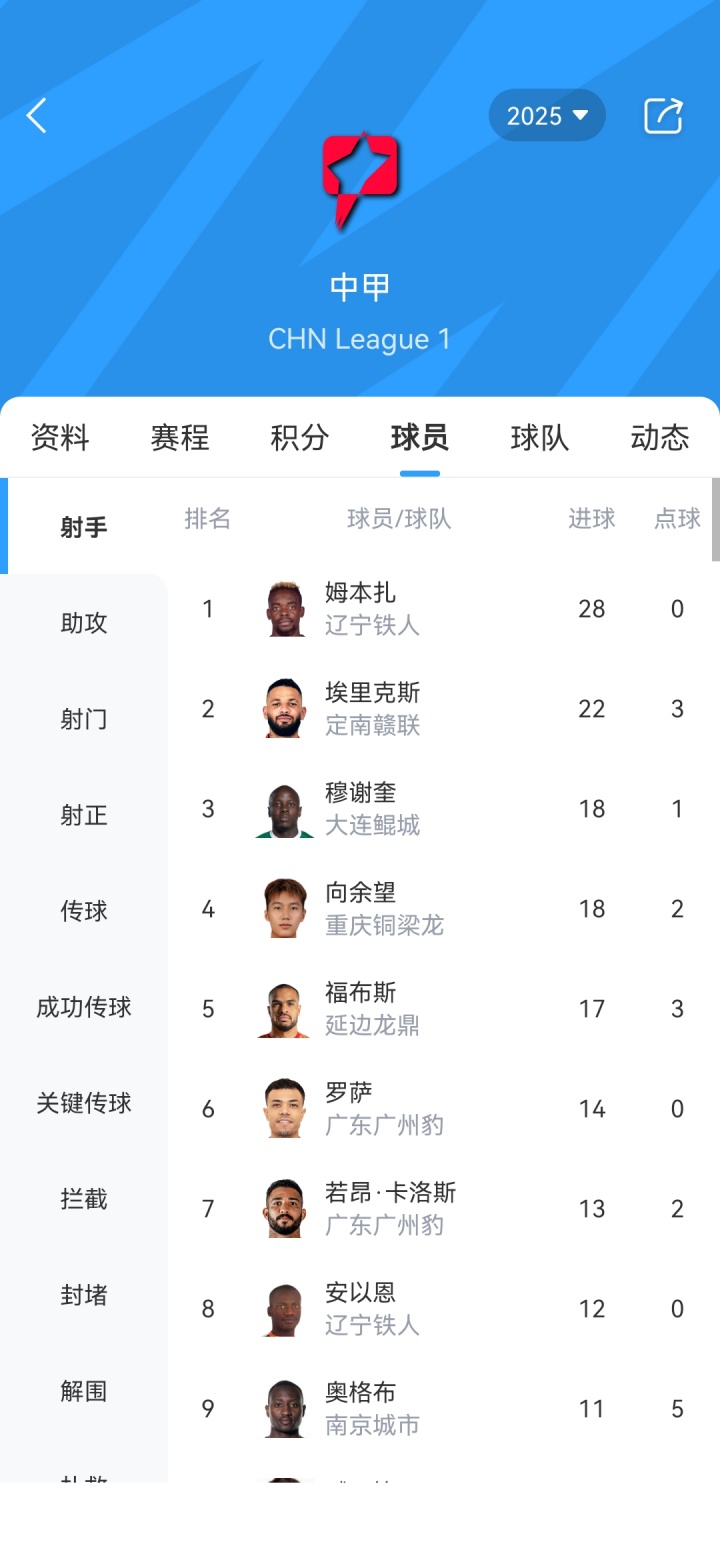 1-姆本扎(辽宁铁人)28球