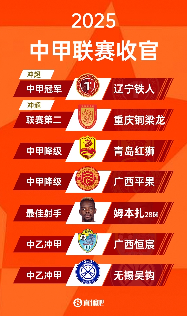 2025中甲大结局:辽宁铁人夺魁 携手重庆铜梁龙冲超!广州豹第三
