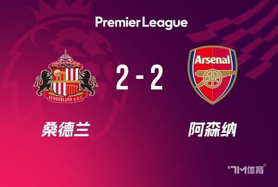 北京时间11月9日凌晨1时30分,英超第11轮,阿森纳做客光明运动活动 场 对阵桑德兰。上半场,巴拉德破门首开记录 。阿森纳半场0-1追赶 桑德兰。下半场,梅里诺助功 萨卡扳平,苏维门迪有一脚射球 击中横梁,随后特罗萨德世界波反超,布罗比补时绝平。最终阿森纳2-2战平桑德兰,阿森纳各项赛事10连胜势头被终结,暂以7分优势领跑英超。 【赛事 关键事件】 第36分钟,桑德兰开出后场定位球到危险区域 内,穆基勒顶球摆渡,巴拉德前插得球后抽射破门,桑德兰1-0领跑 ! 第54分钟,阿森纳前场反抢得手,梅里诺危险区域 弧顶拿球,随后送出斜塞,萨卡危险区域 右侧跟进得球后起脚低射破门,阿森纳扳平,1-1! 第74分钟,特罗萨德危险区域 前沿拿球,晃开防卫 后起脚远射轰进一粒世界波,阿森纳反超,2-1! 第90+4分钟,桑德兰挑传到危险区域 内,巴拉德顶球摆渡,拉亚出击没能将球没收,